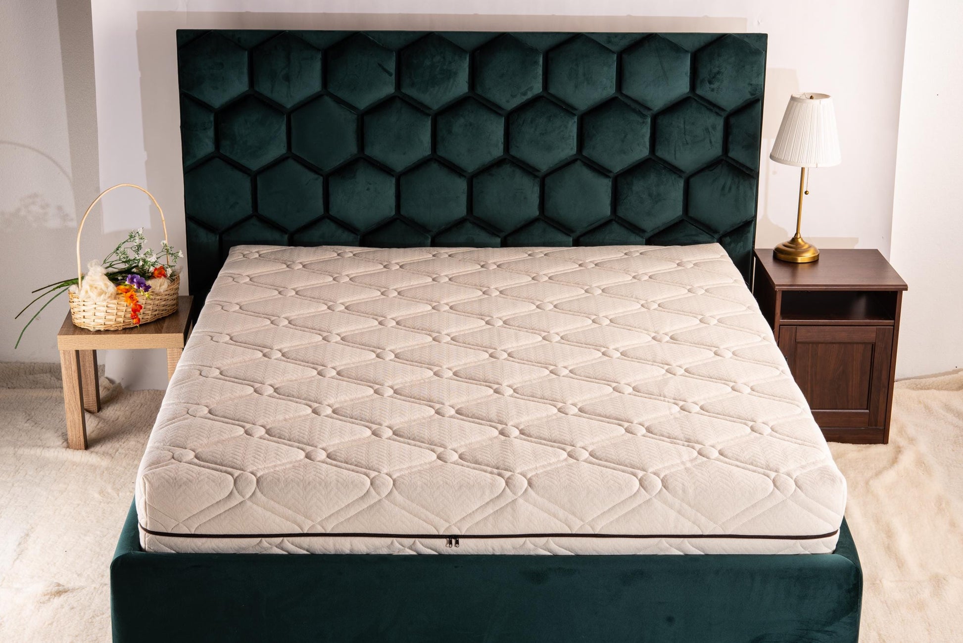 Protect your mattress naturally with this handcrafted mattress cover, made from a premium blend of organic cotton and hemp fabric, quilted with soft, breathable woollen padding. Designed for year-round comfort and lasting durability, this zippered encasement offers the perfect balance of breathability, temperature regulation, and protection.
